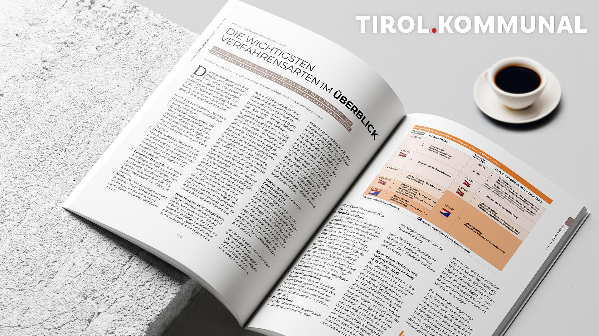 Das Vergaberecht kann gerade für Gemeinden kompliziert wirken. Um dem Abhilfe zu verschaffen, vermittelt unsere Rechtsanwältin Magdalena Ralser in ihrer Artikelserie in der Zeitschrift Tirol.Kommunal gemeinsam mit Alissia Sarah Wolf vom Tiroler Gemeindeverband alles, was die Tiroler Gemeinden wissen müssen, um rechtskonforme Vergabeverfahren auf die Beine zu stellen. Nachdem wir das letzte Mal einen Überblick über das Bundesvergabegesetz 2018 (BVergG 2018) und dessen Anwendung bekommen haben, geht es im zweiten Artikel der Serie um die Wahl des richtigen Vergabeverfahrens. Denn man kann die Art des Verfahrens nicht frei entscheiden – es richtet sich nach gesetzlich vorgegebenen Kriterien.